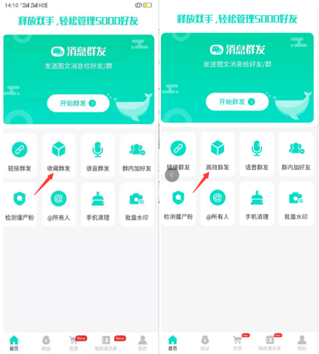 2、群发异常解决方案:已经检测完成的用户,请选择使用高效群发或者收藏群发功能替代,高效群发需要收藏发送的内容,可以一次性发送9个群,群发速度更加高效。